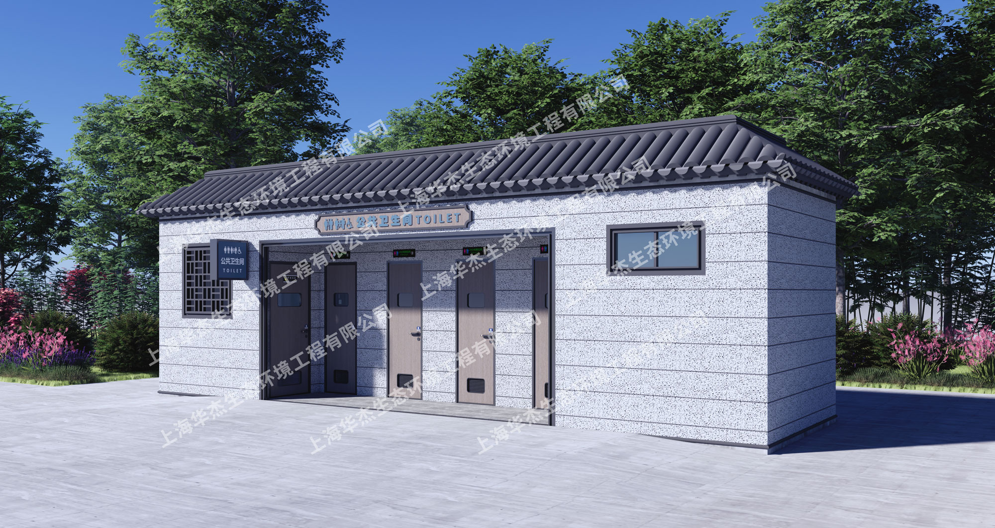 华杰装配式公厕是一款针对城市市政、道路、园林、交通等场所的一款环保节能型公共厕所,装配式厕所是指用预制的构件装配而成的建筑,具有质量可靠、节能环保、建造工期短、可用空间大、受气候条件制约小,节约劳动力并可提高建筑质量等优点。